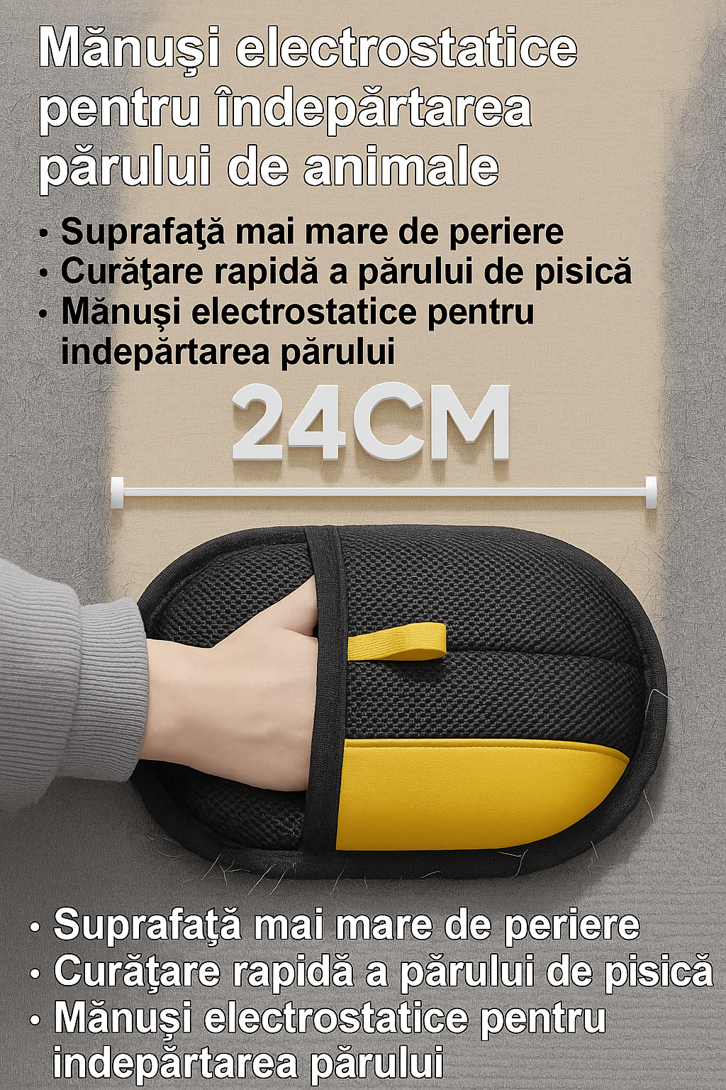 Dacă te-ai săturat să vezi păr de câine sau pisică pe canapea, haine sau în mașină, această mănușă antistatică este soluția ta ideală. Cu un design ergonomic, suprafață dublă și material electrostatic, adună firele de păr într-o singură trecere. Nu mai ai nevoie de role adezive sau aspirator! E lavabilă, reutilizabilă și ușor de curățat – doar o scuturi și e gata pentru o nouă utilizare. Perfectă pentru iubitorii de animale care vor curățenie rapidă și fără stres.