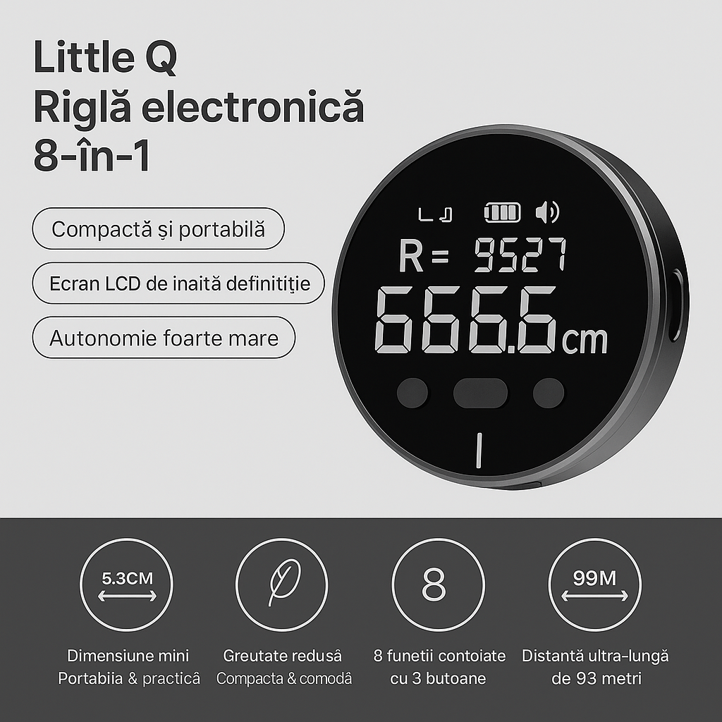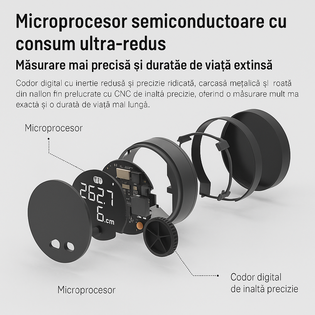 Fabricată cu materiale premium și tehnologie CNC, ruleta digitală asigură durabilitate și acuratețe. Potrivită pentru mobilier, textile, artizanat și inginerie. Compactă și elegantă, ușor de folosit chiar și cu o singură mână.
